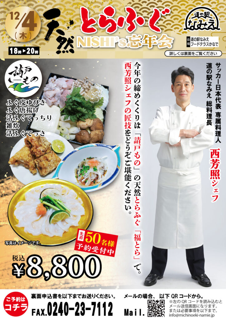 12月4日(木)開催「天然とらふぐ NISHI’S忘年会」予約受付中です。