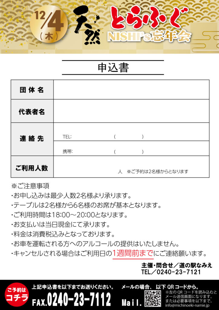 【予約受付中】12/4(木)開催 天然とらふぐ NISHI’S忘年会