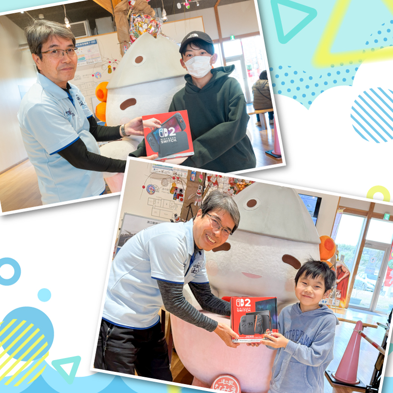 NINTENDO SWITCH2プレゼント企画へ当選された、葛尾村のK・Sくん、いわき市のR・Sくんくんに賞品をお渡しさせていただきましたことご報告させていただきます。